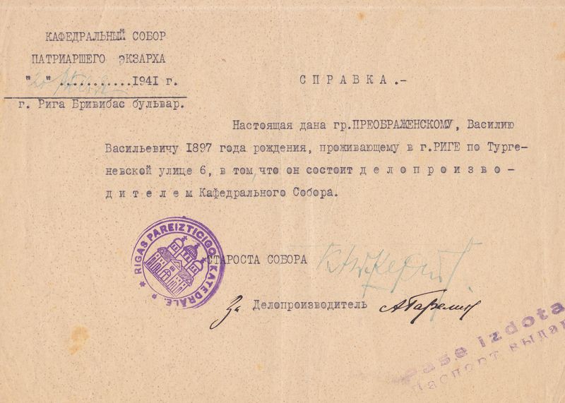 Fotogrāfijas un dokumenti no Nikolaja Preobraženska ģimenes arhīvā