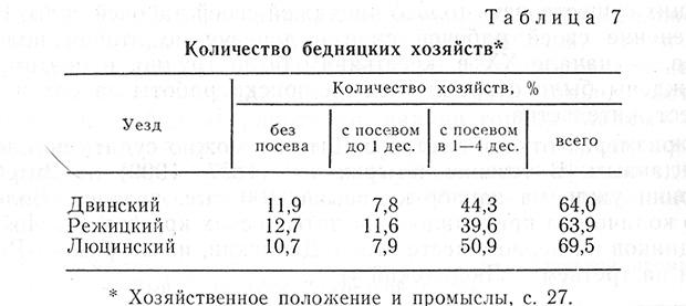 Батраки и бобыли частных имений инфлянтских уездов не были наделены землей, хотя «высочайше» утвержденным 29 февраля 1864 г. решением помещикам рекомендовалось предоставлять приписанным к их имениям батракам и бобылям за выкуп семейные участки в размере 1,5 дес. (106) Не оказалось для наделения названных групп безземельных крестьян и свободной казенной земли.