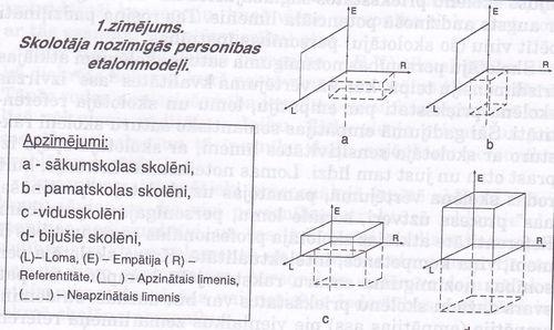 Šāda pieeja mūs tuvina ļoti svarīga jautājuma risinājumam par skolotāja personības etalonmodeļa izveidi skolēniem dažādos vecumposmos. Šajā gadījumā skolēnu metaindivīda reprezentācijā etalonmodeļi atklāsies trīsdimensiju telpā un divos līmeņos. Balstoties uz eksperimentālā darba rezultātiem, šos modeļus var iztēloties šādā veidā: