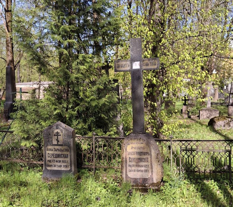 1897. gada 19. aprīlī (pēc Jūlija kalendāra jeb vecā stila) nelaiķi apbedīja Pokrova kapsētā Rīgā. „Dvēseles aizlūguma dievišķo liturģiju šajā dienā noturēja Garīgā semināra rektors virspriesteris A. Aristovs, līdzkalpojot virspriesterim A. Ščelkunovam, priesteriem A. Agronomovam, M. Sinaiskim un A. Cvetikovam. Pēc dievišķās liturģijas apstāvēšanu veica Visaugstisvētītais Arsēnijs ar daudzskaitlīgu Rīgas garīdznieku pulku. Liturģijā pēc psalma lasījuma runājis priesteris V. Pliss, bet mirušā apstāvēšanas laikā – priesteris A. Agronomovs”. („Протоиерей Тарасий Фёдорович Серединский (Некролог)”./ „Virspriesteris Tarasijs Seredinskis (Nekrologs)”). – Rīga, 1897., 7. lpp.).